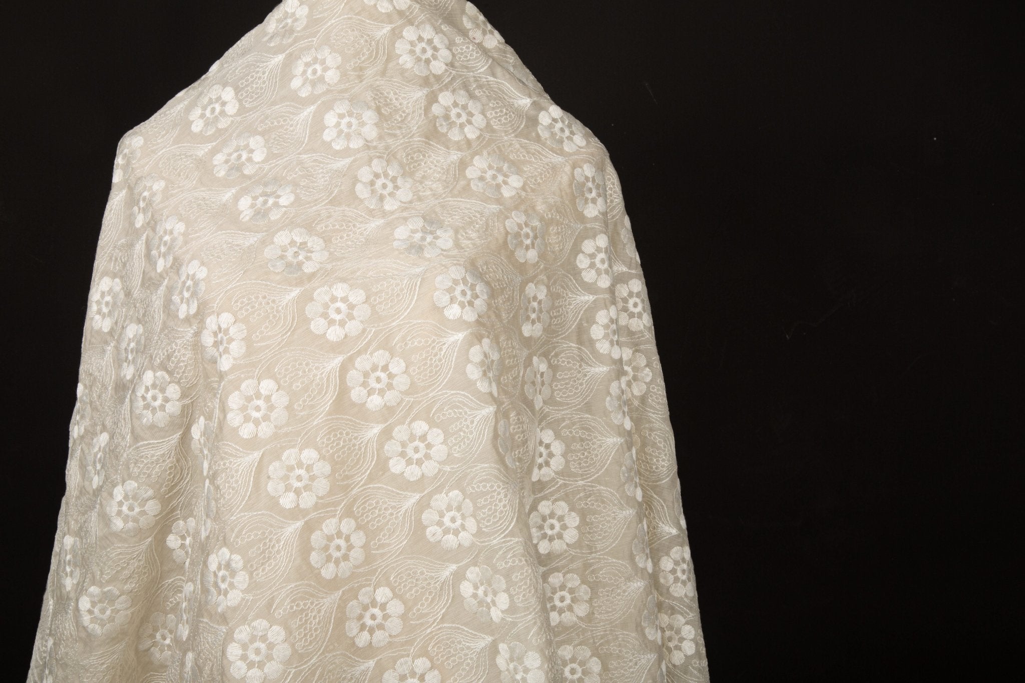 Champagne Cream: This is the colorway featured in the image. It is not a stark, cold white, but rather a warm, buttery shade of cream or pale champagne. The key highlight of this shade is its "Vintage Glow." The warm-toned base softens the reflection of light, making the white embroidery threads look gentle and sophisticated rather than harsh. This color is incredibly flattering on a wide range of skin tones, adding a touch of warmth and nobility. It carries a nostalgic filter, making it ideal for heirloom-quality bridal wear or timeless anniversary dresses.